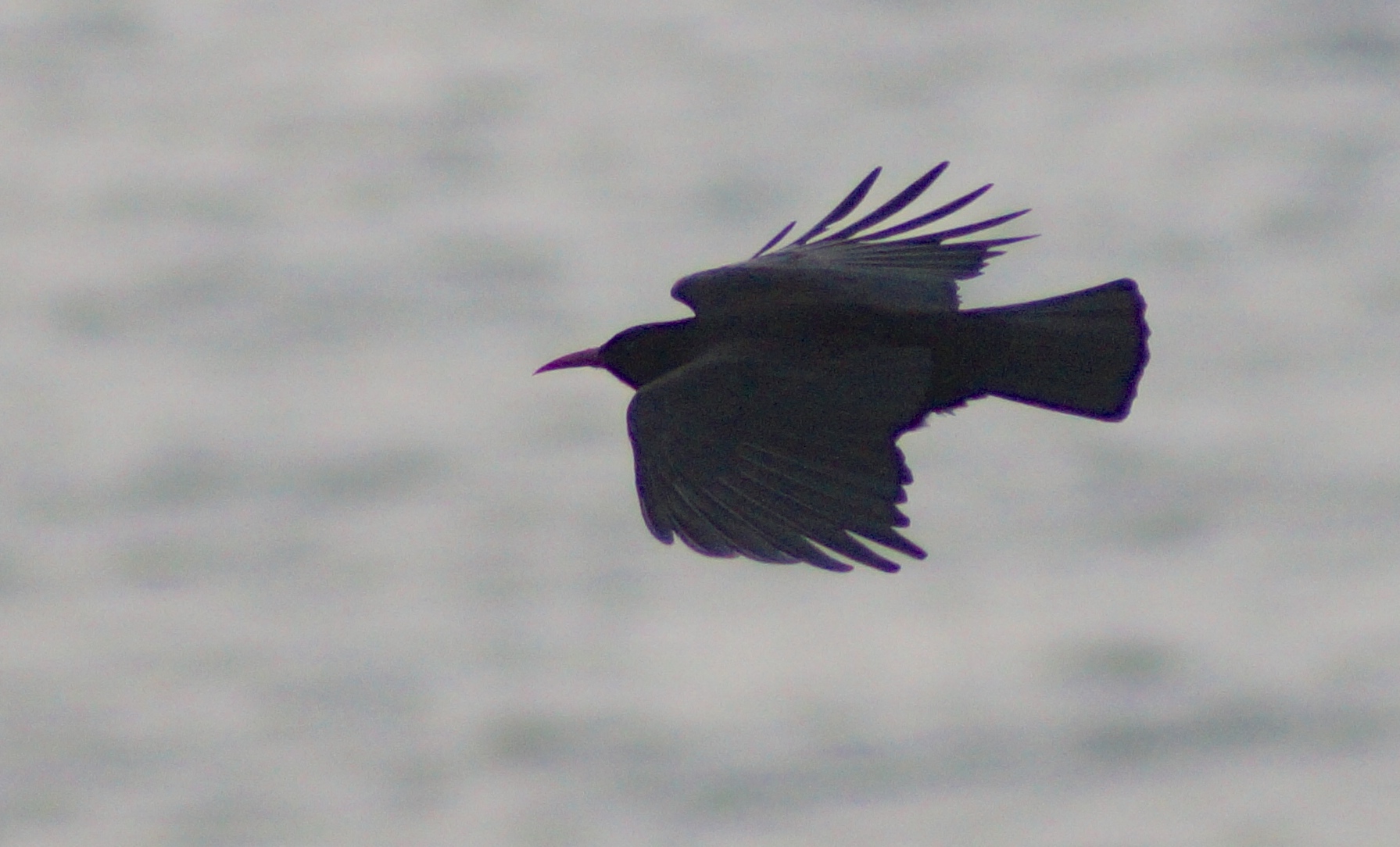 It’s hard to think of choughs as crows when they feel so foreign, and there is something uncomfortable about lumping these extraordinary little birds in with an extremely commonplace and everyday family. Choughs are every bit as different from crows in behaviour as jays are in appearance, and the family name probably gets them off “on the wrong foot” with people who want more from their birdwatching than “just a kind of crow”. I have plenty of time and respect for crows in general, but choughs stand out as by far the most charming, delicate and impish. Their aerobatics are astonishing, and there is something wonderfully naughty about their calls over the roar of the sea and the bawling din of gulls.