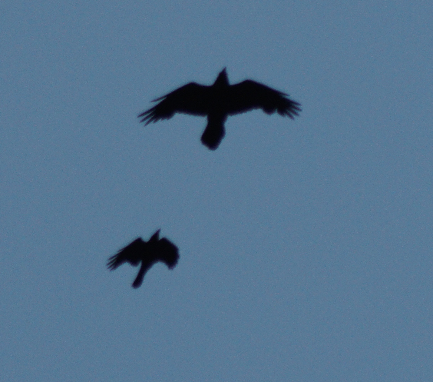 Going through some photographs from last month, I couldn’t resist posting this picture of a Manx chough taken during my visit to the Isle of Man a few days ago. This bird helpfully chose to mob a raven over the cliffs at Peel Hill, and the resulting picture provides a handy sense of scale (below).