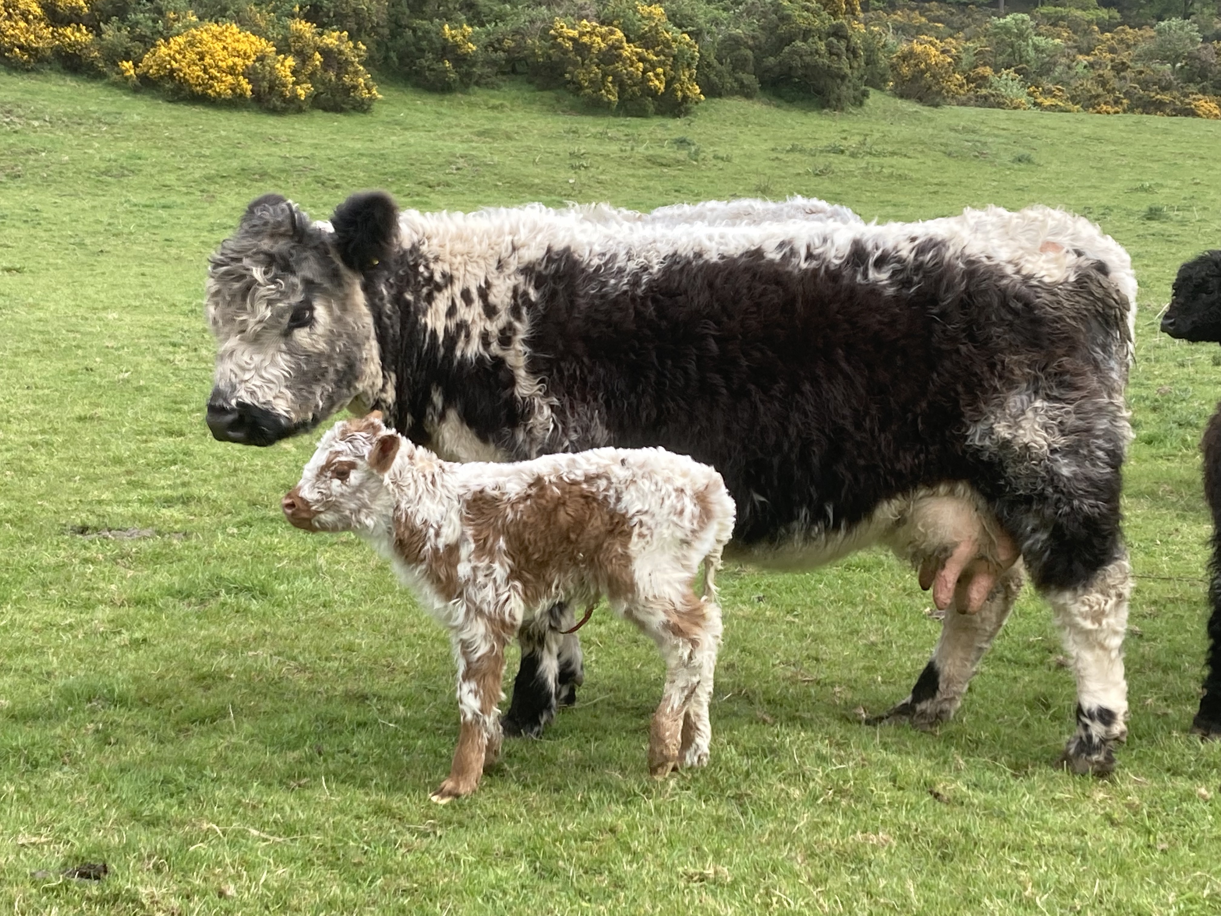 Since then she’s done well and I’m thrilled with her markings, which are crazy enough to put her formal registration in doubt with the Riggit Galloway Cattle Society. A lot of white is permissible for a pedigree certificate, but this heifer must be getting close to the maximum allowable limit. To me she looks wonderfully similar to the Moiled cattle I went to see in County Antrim last year, and beside every other reason she’s a fine reminder of that excellent trip out West.