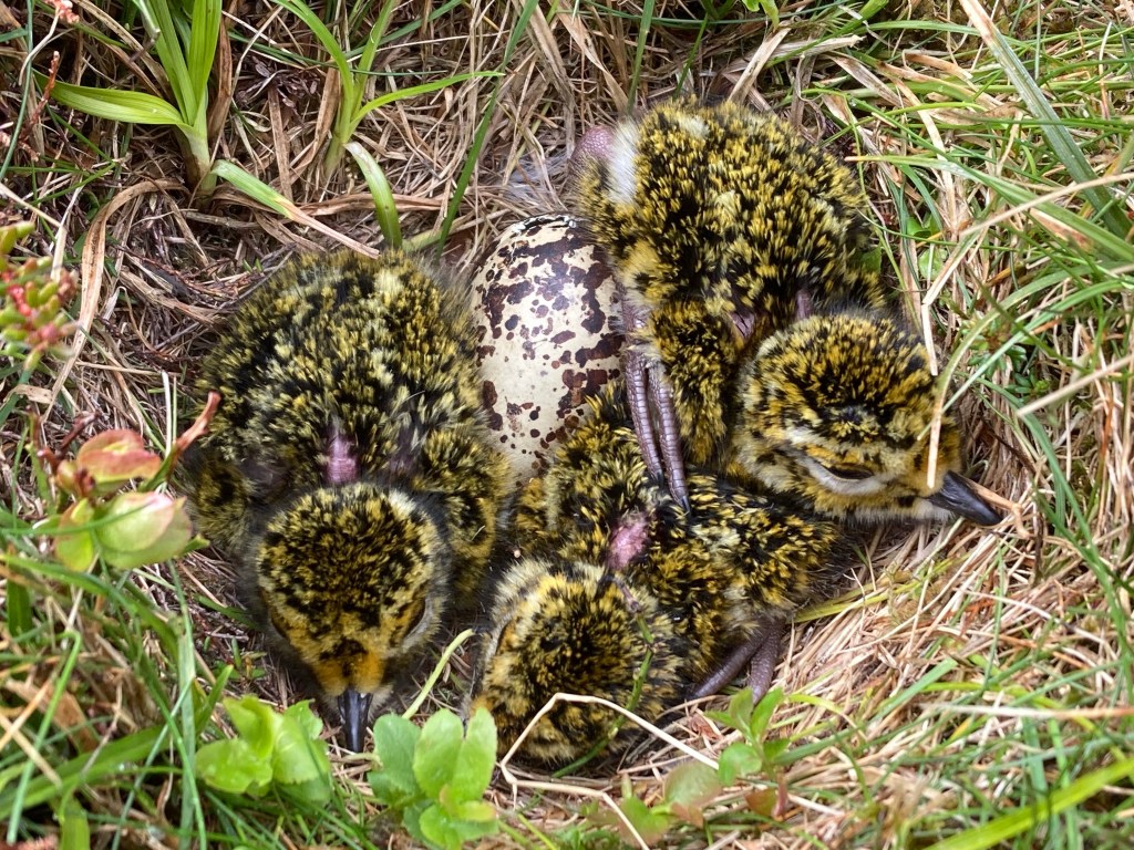 It’s perfectly possible that last year’s four chicks were eaten by ravens or foxes as soon as they left the nest, and it would not be surprising if these chicks (pictured) have already been eaten by something in the time it’s taken me to write this blog post. But in their favour is a large area of pristine, high-altitude bog habitat which has almost everything a growing plover chick might need. Provided the weather stays settled, there’s no reason why these birds shouldn’t thrive. And when it comes to predation, I sometimes wonder if certain species can persist at extremely low densities because many of their natural predators have given up looking for them. Back when these hills had one or two hundred nesting pairs of plover, it’s likely that ravens would fly over to make a special visit during the breeding season. Now we’re down to a handful of chicks, it’s hard to see why a raven would bother, and perhaps the risk of predation is more associated with chance encounters and simple bad luck.