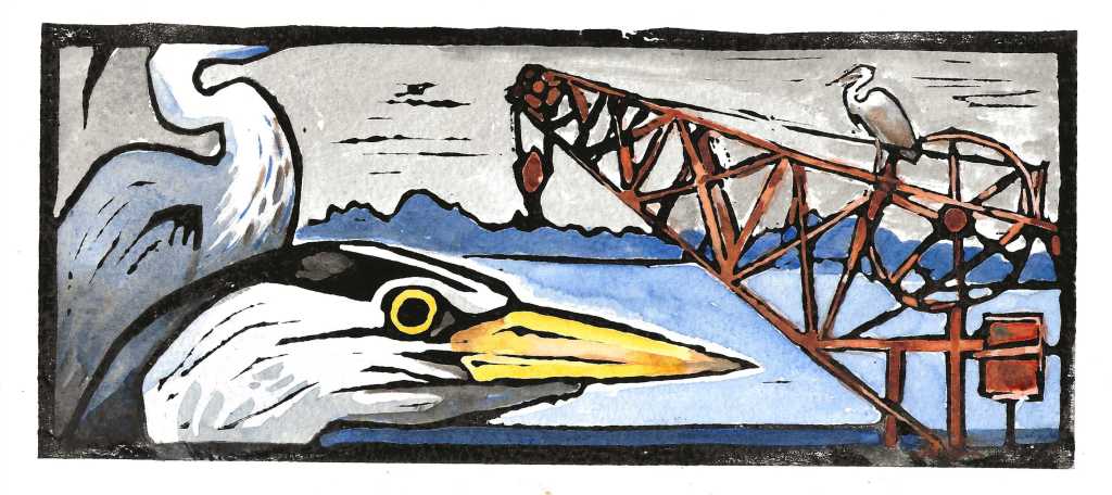 The main beneficiaries here are herons, which stand in endless patience beside the outlet of a pipe where pieces of eel are sometimes blown back into the water. The birds shriek and scart on the rivets, and even in August, youngsters still beg their parents for something new. In the midst of this post-industrial wasteland, there’s an almost biblical sense of reversion which evokes the aftermath of Edom’s destruction in Isiah 34:11 – “But the cormorant and the bittern shall possess it; the owl also and the raven shall dwell in it: and He shall stretch out upon it the line of confusion, and the stones of emptiness“.