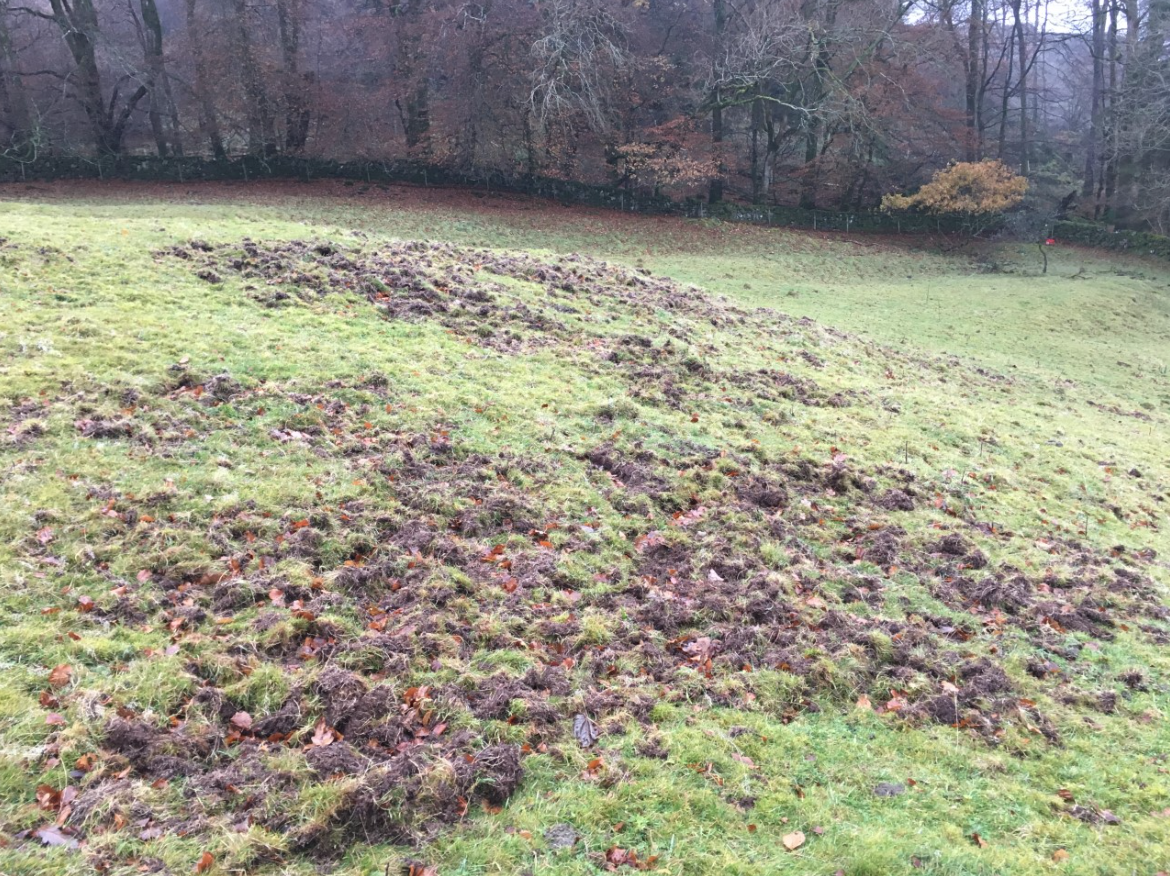 Picture: Signs of badger rooting in one of my fields – 27/10/2020 – this has recently come back with a strong preponderance of wildflowers.