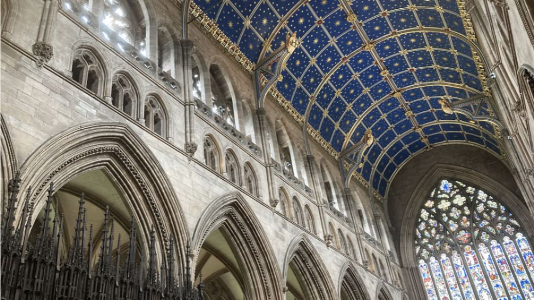 Christian rituals pay close attention to all aspects of human nature. A cynic would say that liturgies are designed to manipulate and exploit the weak or credulous masses, but there’s nothing sinister about the use of beauty, drama and spectacle in religion. These things were not imposed upon us – we made an institution to meet our needs, so it’s hardly fair to blame the Church for reading us like a book. When you open your mind to a church or a ceremony, you’re allowing yourself to be led by profoundly human traditions. When it comes to a wider engagement with prayer, there are no accidents; you don’t notice things – they’re shown to you. So it was foreseen that I’d look up and be dazzled as the congregation rose to sing at Evensong, because I am part of a pattern. We’re all foreseeable, and if it’s true that those stained glass windows are seven hundred years old, it’s the same light running through them to surprise us, time and again.