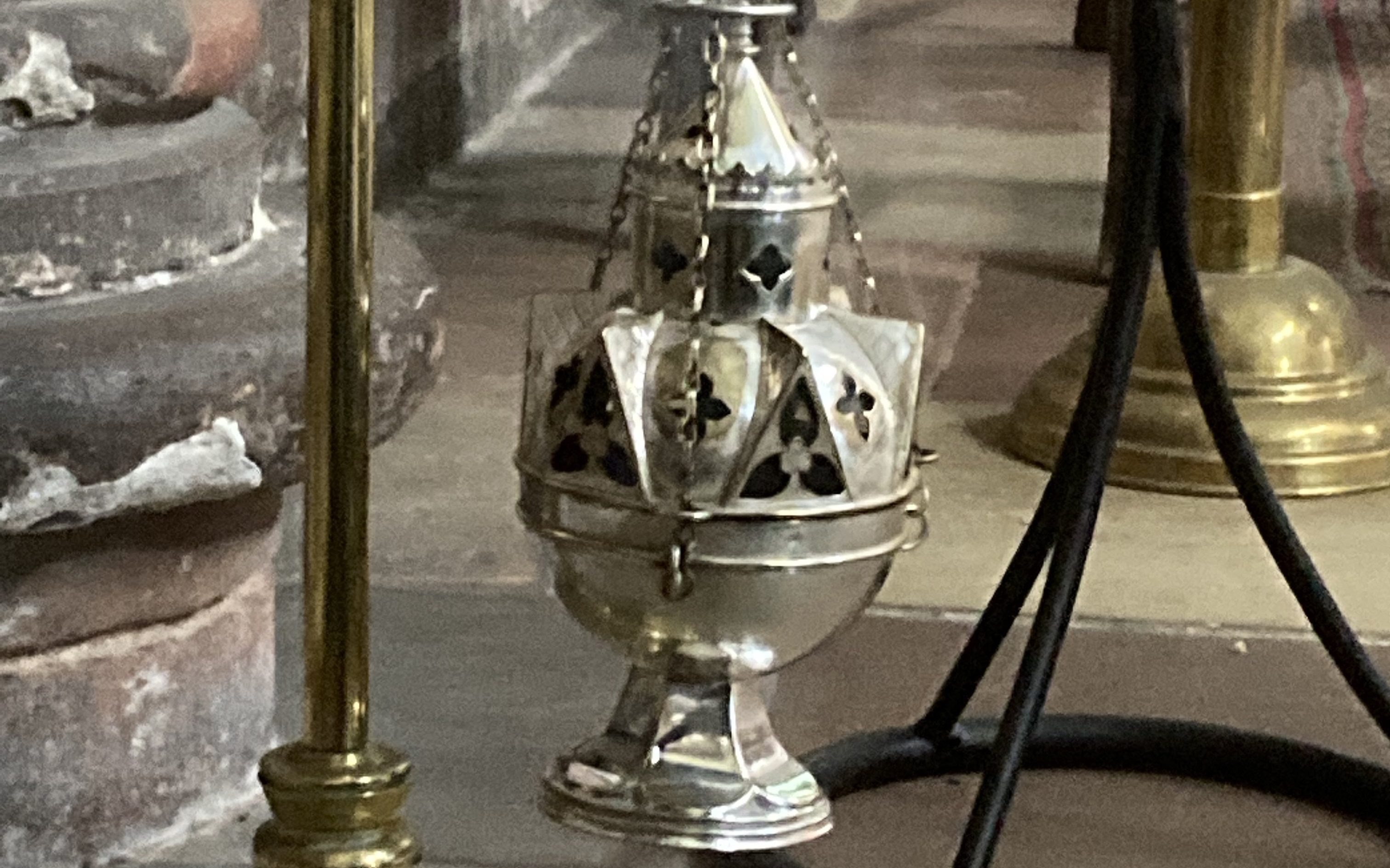 The Offering of Incense is based upon silence and introspection. At its best, the building falls so quiet that you can hear the charcoal crackling in the bowl, and every gasp and flutter of breath through the nasal passages of the people around you. As a consequence, the service can offer a great relief from the day-to-day harassment of life, and I choose it because having offered my sorrows, I am sometimes less sorrowful. But it’s hard to sustain a level of quiet in a popular building, and the mood is often obscured by the tourists and visitors who’ve missed the sign which asks for quiet during the service. They talk, and the sound of their talking rackets down the aisles to the little altar with its thread of smoking rosa mystica. It’s hard to manage this kind of disturbance, and difficult to ignore it. It’s never meant maliciously, and if the story of the pelvic floor is anything to go by, it’s only sound broadcast without forethought or self-awareness. But it’s sometimes tempting to ask for silence anyway, even though you’ve come to observe the peace, not police it.