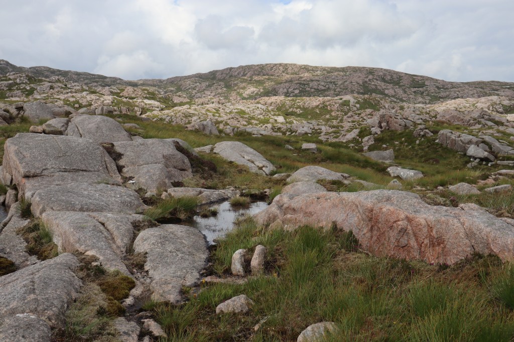 The only clear divergence lies in how we tell of ourselves, and if I am struck by the difference between Donegal town and a place like Kirkcudbright, the line is blurred in the hills. Devoid of human movement, these rocks are all one thing – and while I respond to manmade legends of heroism and nationality, they’re built upon such places – because from the first stone that is laid in the bigging of a tale, there’s a distortion which leans towards the maker. Pretty soon, there’s land where you can go that I cannot, and gossamer-light lines are wound as strong as wire. It matters what we say of home, but these are only sayings which need to be measured against shelves of glaciated rock which bear the scars of ice like the tracks of a currycomb on the warm skin of a horse; the same light strokes which run from Stornoway to County Kerry, and I was never more in love with my own home than when I found it somewhere else.