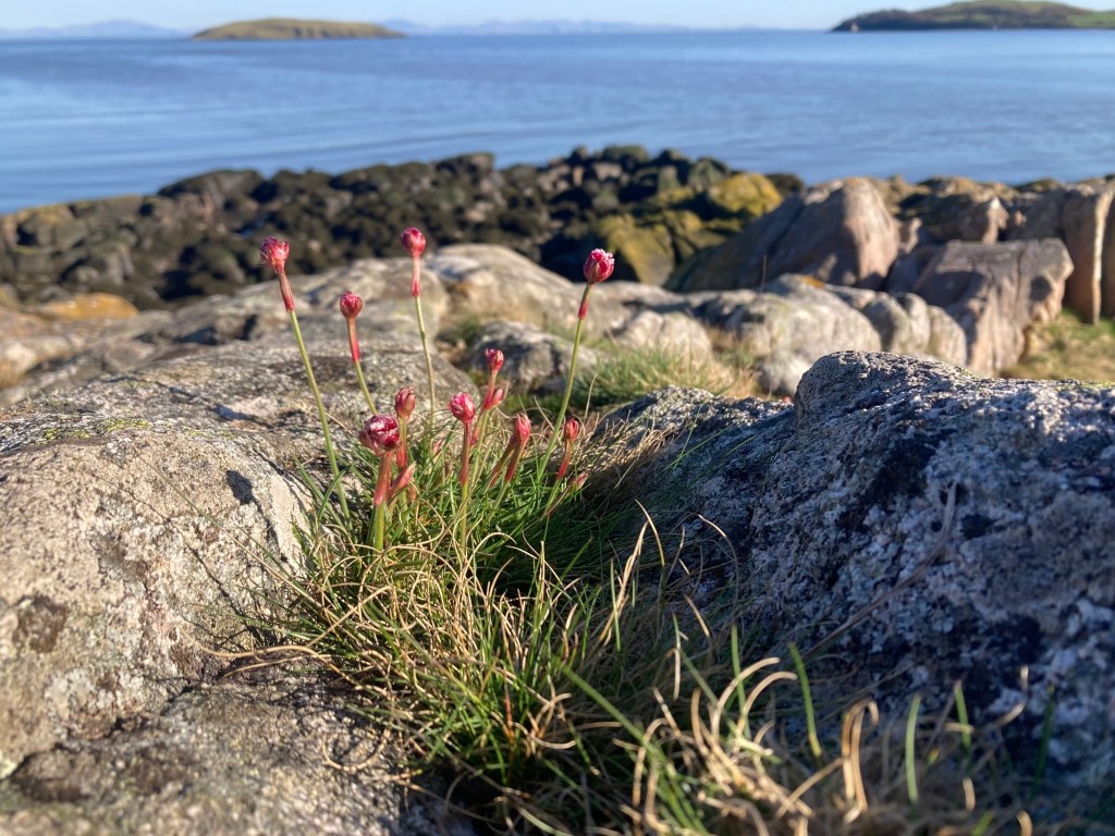 Sea-pinks are returning to the coast, and the rocks are bristling with strands of crimson pigment. I used to come here with my parents and now I bring my son to squeal and shriek along the strandline. He runs beside his puppy on the sand, then they pause to prod at something dead in the wreckage of heaving weed. I found a porpoise washed up here once; its skeleton was four feet long from nose to final fin. I pried away its skull and carried it home; now it sits on a shelf in my workshop, and nobody can tell me what it is.