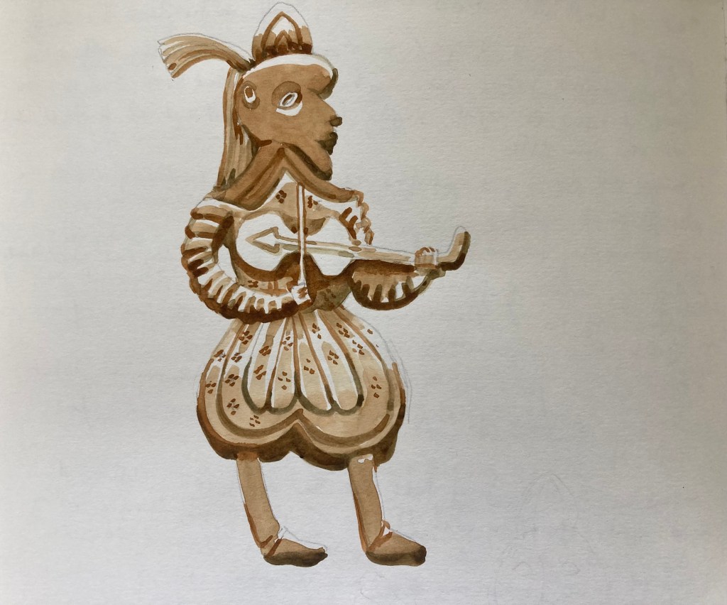 Picture: my sketch of woodwork from Threave Castle at the National Museum of Scotland – 11/4/25