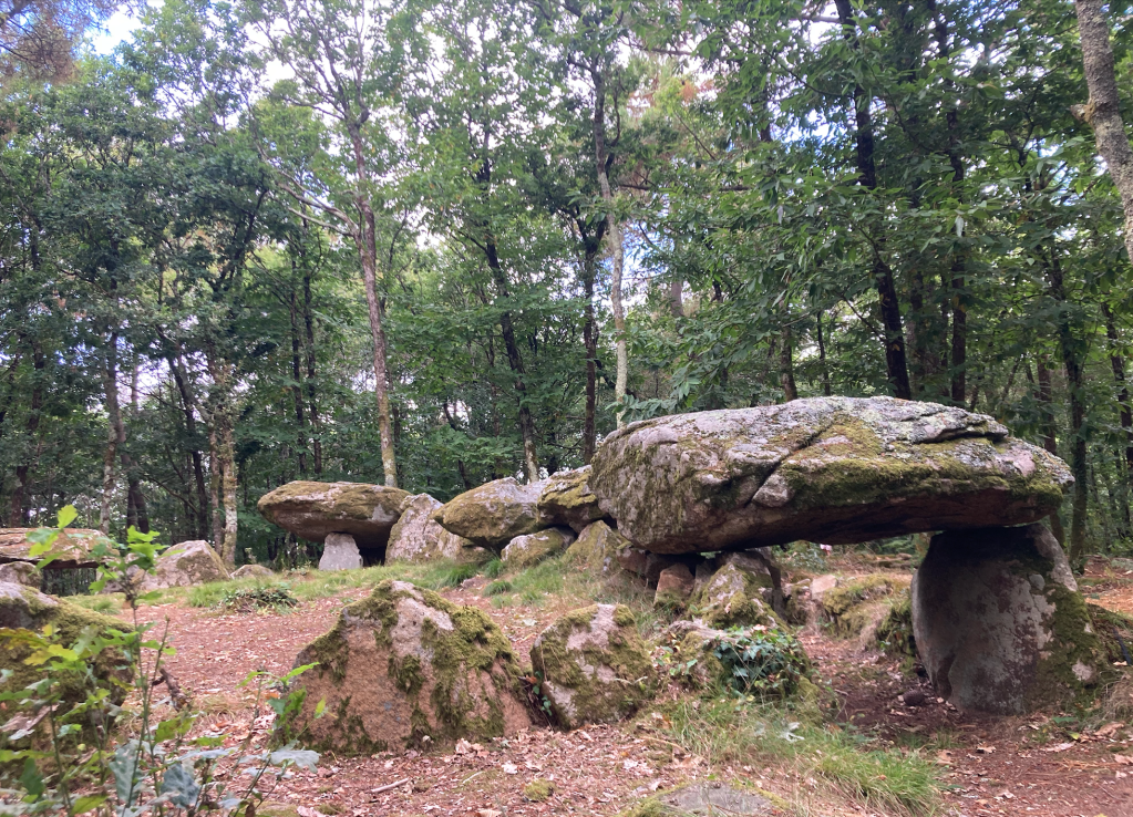 In Brittany, these megalithic tombs are called allées couvertes – and this one at Mané Bihan is almost five thousand years old. But photographs of its excavation in the 1920s seem to show a different place altogether, because there were no trees here a century ago. The black-and-white images show a man posing beside the tallest stone against a backdrop of heather, gorse and brilliant sun. It made me think of stone circles and chambered cairns in Galloway which are so often left to face the weather on open hills above the Solway. We can look into those monuments from miles away, and standing inside these lost enclosures, we watch the rain sweep in for half an hour before the first drop ever finds us. It follows that our monuments feel lost and lonely – abandoned to austerity, and perhaps we wonder why our ancestors chose to celebrate the world in such bleak and desolate places.